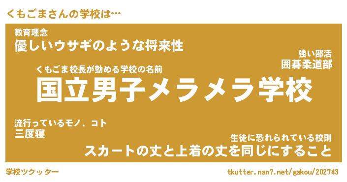 | 意味不明あだ名 | 『ペロリンくもごま』『永久保存くもごま』 |