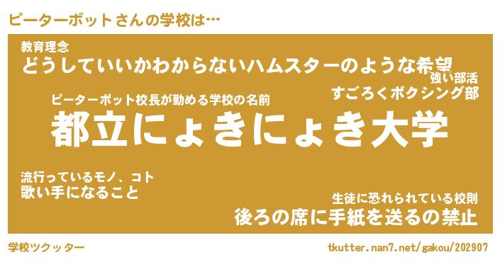 | 男性向けラノベタイトル風あだ名 | 『ピーターボットの憂鬱』 |