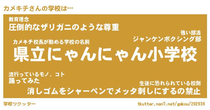 | 意味不明あだ名 | 『ペロリンカメキチ』『永久保存カメキチ』 |