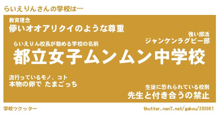 | 肩書あだ名 | 『らいえりん店長』『らいえりん大統領』 |