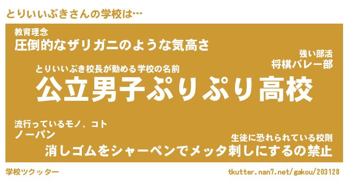 | 男性向けラノベタイトル風あだ名 | 『とりいいぶきの憂鬱』 |
