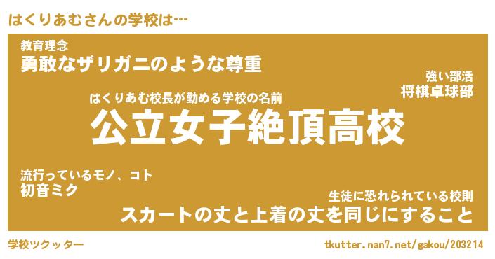 | 男性向けラノベタイトル風あだ名 | 『ハクリアムアートオンライン』 |