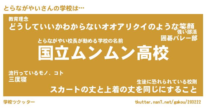 | 胡散臭い通販商品みたいなあだ名 | 『必ず成功する水晶球…その名も「とらながやい」』 |