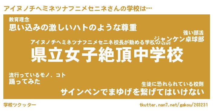 | 意味不明あだ名 | 『ペロリンアイヌノチヘミネツナフニメセニネ』 |