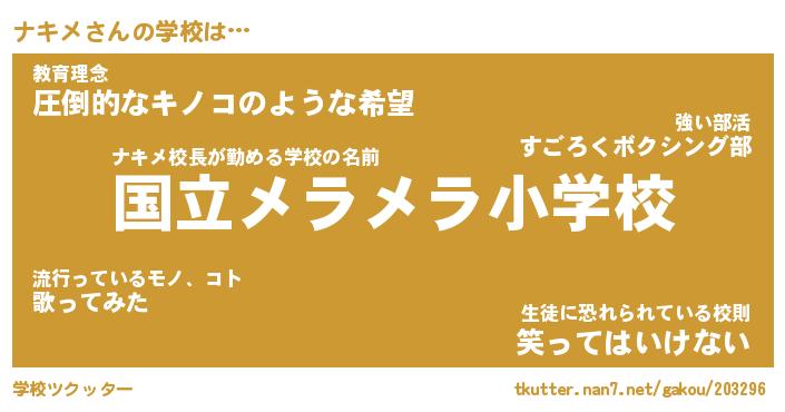 | ヒーロー風カッコイイあだ名 | 『スーパーナキメ』『ウルトラナキメマン』 |