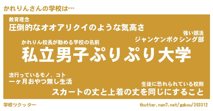 | 男性向けラノベタイトル風あだ名 | 『かれりんの憂鬱』 |