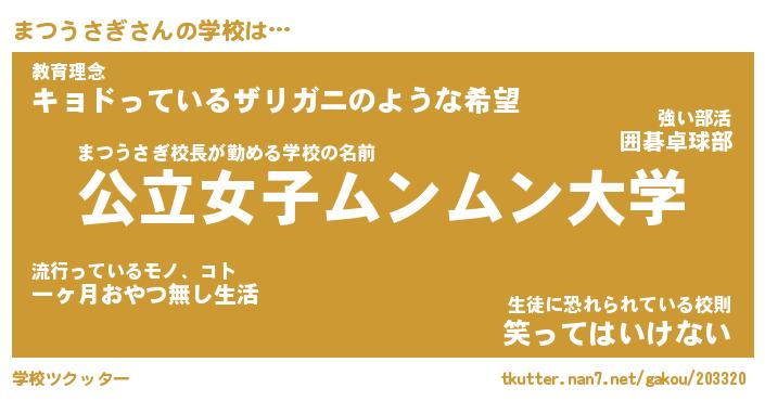 | ファンタジー風あだ名 | 『マツフェル』『エターナルマツウサギー』 |