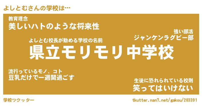 | 意味不明あだ名 | 『ペロリンよしとむ』『永久保存よしとむ』 |
