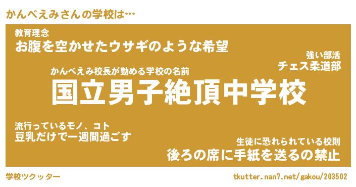 | 男性向けラノベタイトル風あだ名 | 『かんべえみの憂鬱』 |