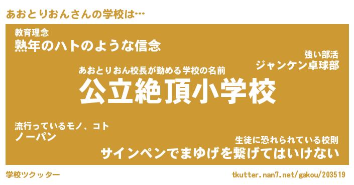 | 男性向けラノベタイトル風あだ名 | 『あおとりおんの憂鬱』 |