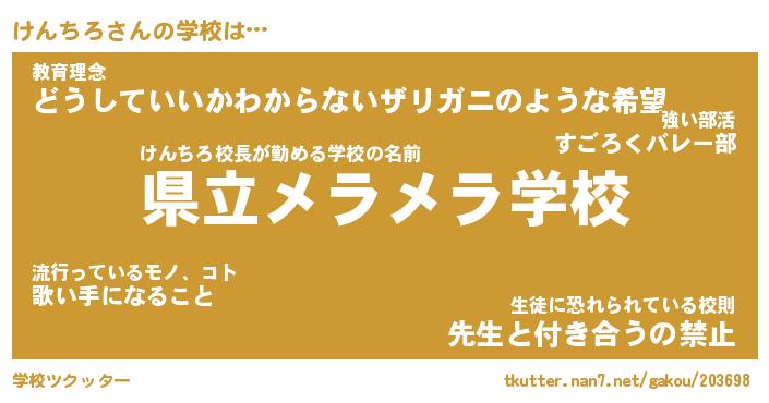 | 意味不明あだ名 | 『ペロリンけんちろ』『永久保存けんちろ』 |