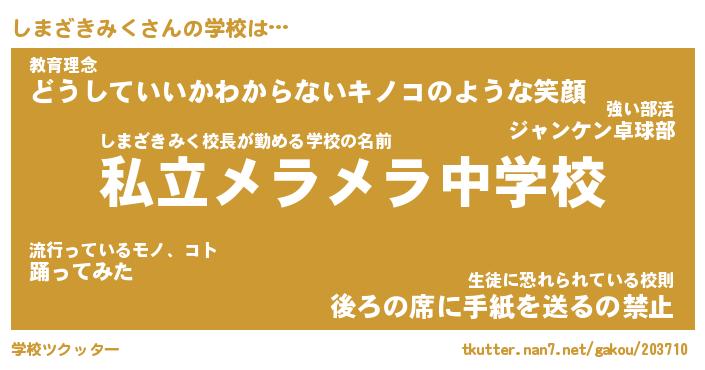| 胡散臭い通販商品みたいなあだ名 | 『必ず成功するブレスレット…その名も「しまざきみく」』 |