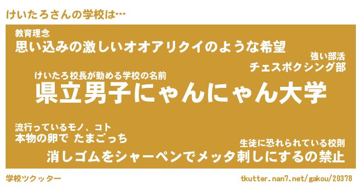 | 意味不明あだ名 | 『ペロリンけいたろ』『永久保存けいたろ』 |