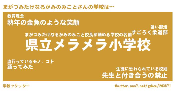 | ヒーロー風カッコイイあだ名 | 『スーパーマガツミタケナルカミノミコト』 |