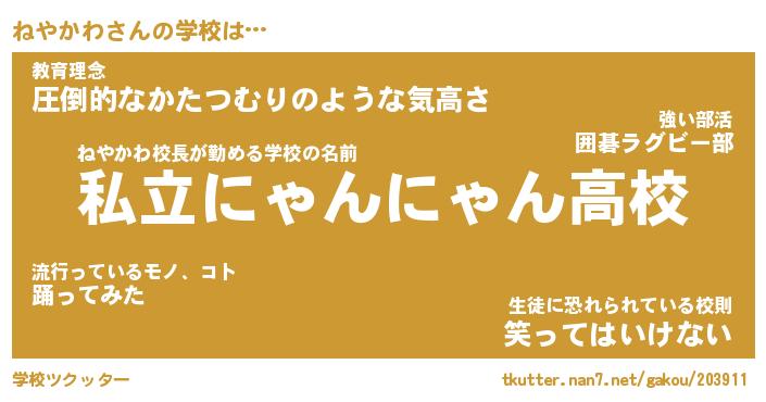 | 肩書あだ名 | 『ねやかわ社長令嬢』『ねやかわ総理大臣』 |