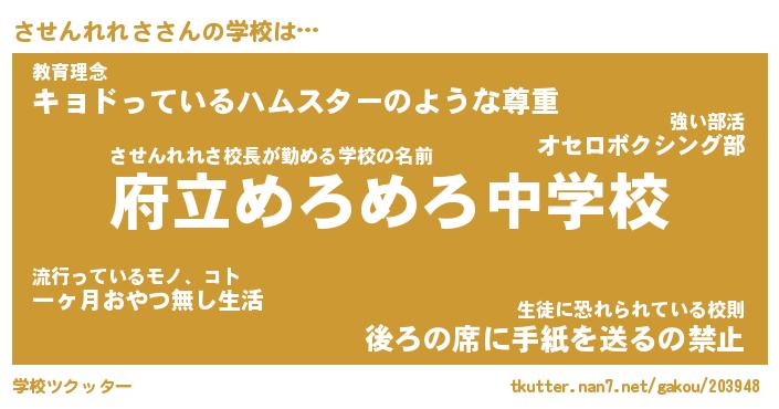 | 伝説のあだ名 | 『伝説のスナイパーさせんれれさ』 |