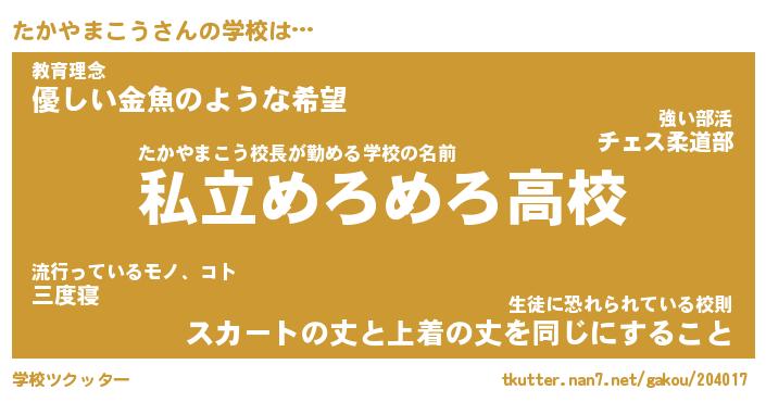 | 男性向けラノベタイトル風あだ名 | 『たかやまこうの憂鬱』 |
