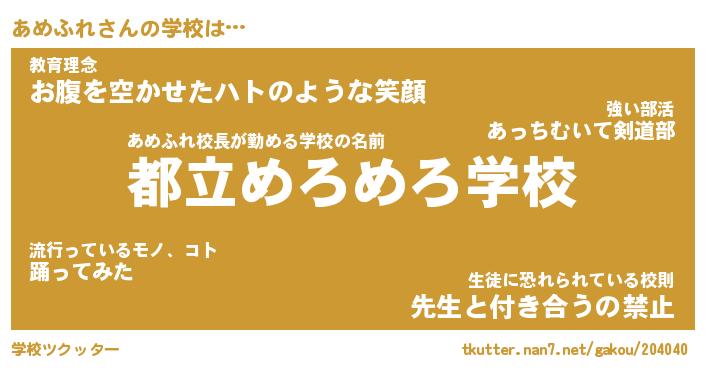 | 意味不明あだ名 | 『ペロリンあめふれ』『永久保存あめふれ』 |