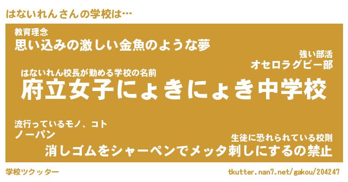 | 男性向けラノベタイトル風あだ名 | 『ハナイレンアートオンライン』 |