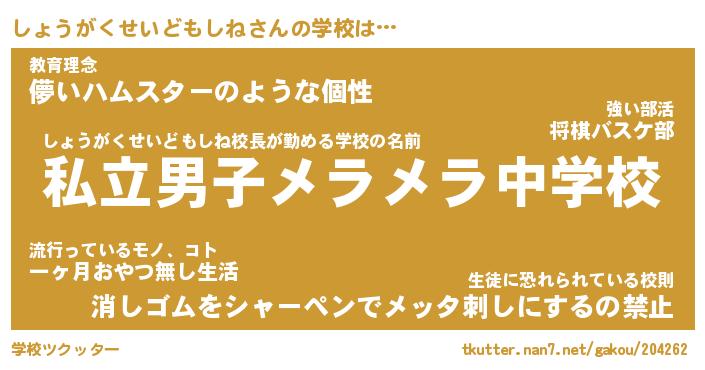 | 男性向けラノベタイトル風あだ名 | 『しょうがくせいどもしねの憂鬱』 |