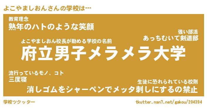| 女子向けラノベタイトル風あだ名 | 『よこやましおん姫と円卓の騎士』 |