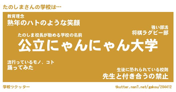 | 意味不明あだ名 | 『ペロリンたのしま』『永久保存たのしま』 |