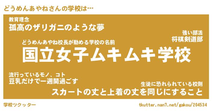 | 男性向けラノベタイトル風あだ名 | 『ドウメンアヤネアートオンライン』 |