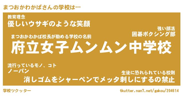 | 男性向けラノベタイトル風あだ名 | 『マツオカワカバアートオンライン』 |