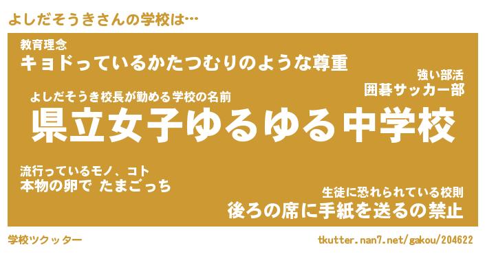 | 男性向けラノベタイトル風あだ名 | 『ヨシダソウキアートオンライン』 |
