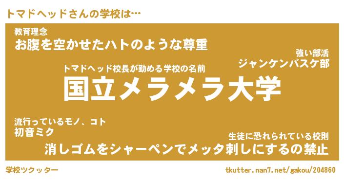 | 男性向けラノベタイトル風あだ名 | 『トマドヘッドの憂鬱』 |