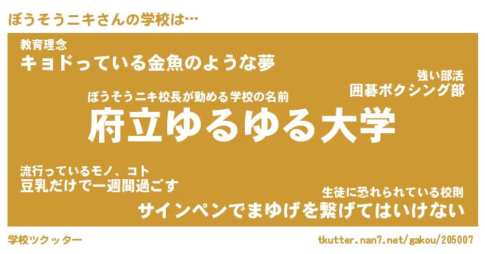 | 男性向けラノベタイトル風あだ名 | 『ぼうそうニキの憂鬱』 |