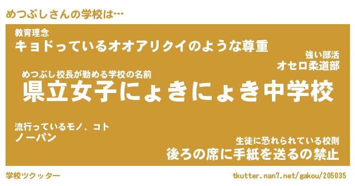 | 意味不明あだ名 | 『ペロリンめつぶし』『永久保存めつぶし』 |