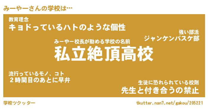| 男性向けラノベタイトル風あだ名 | 『みーやーの憂鬱』 |