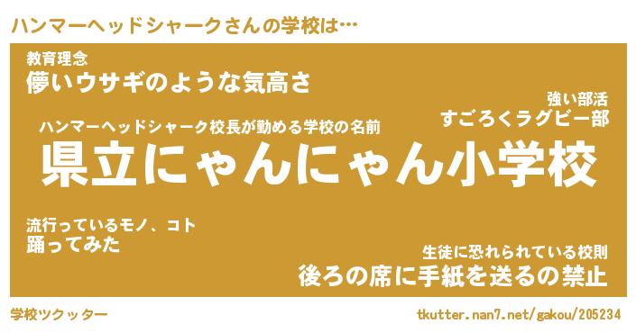 | 男性向けラノベタイトル風あだ名 | 『ハンマーヘッドシャークの憂鬱』 |