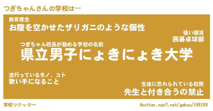 | ヘコむあだ名 | 『つぎにゅー』『酢こんぶ』 |