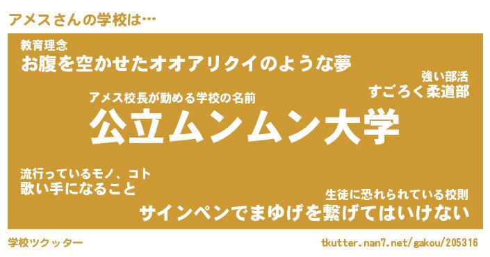 | ヘコむあだ名 | 『アメにゅー』『豆乳』『アメっ子』 |
