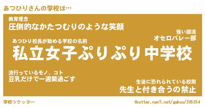 | ヘコむあだ名 | 『あつもー』『牛乳』『あつ太郎』 |