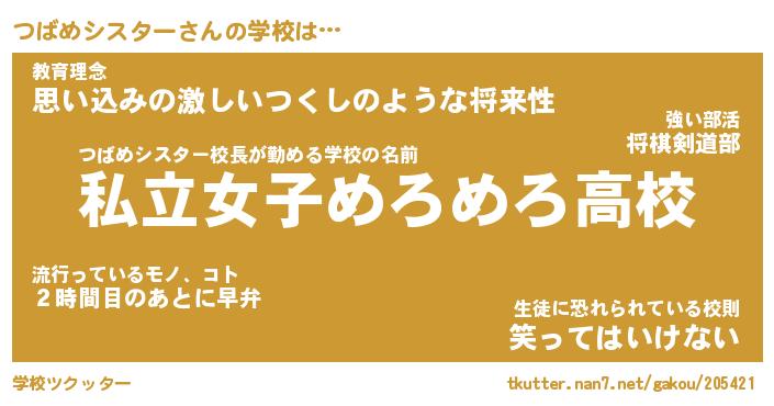 | 先生 | つばめシスター先生が勤める学校名『府立しゃくれ高校』 |