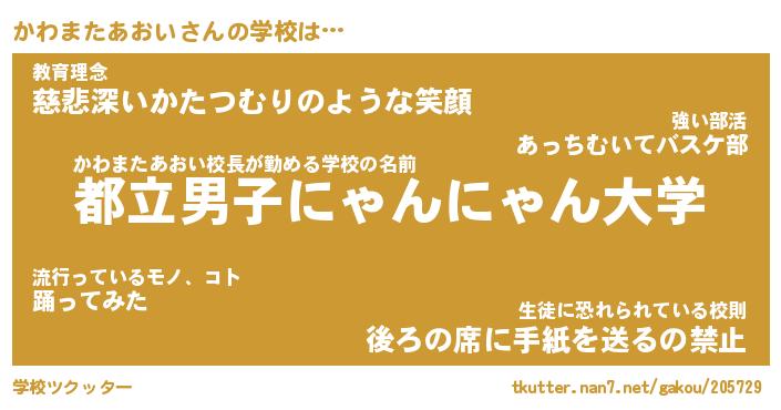 | ツイッター | かわまたあおいさんのツイッターID『katatsumuri_kun』 |