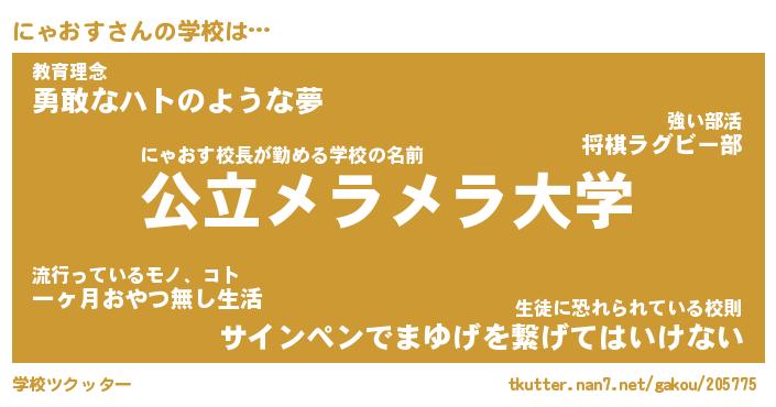 | 意味不明あだ名 | 『ペロリンにゃおす』『永久保存にゃおす』 |