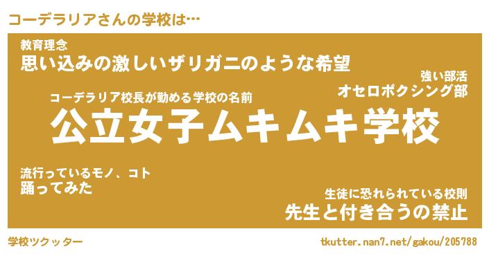 | 肩書あだ名 | 『コーデラリア社長』『コーデラリア塾長』 |