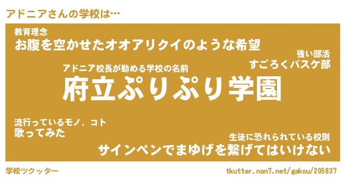| 意味不明あだ名 | 『ペロリンアドニア』『永久保存アドニア』 |