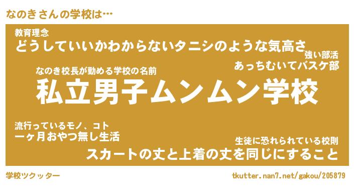 | 男性向けラノベタイトル風あだ名 | 『なのきの憂鬱』 |