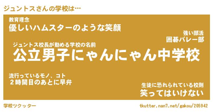| ヒーロー風カッコイイあだ名 | 『スーパージュントス』『魔戒騎士ジュ』 |