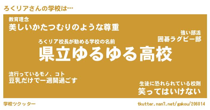 | 男性向けラノベタイトル風あだ名 | 『ろくリアの憂鬱』 |