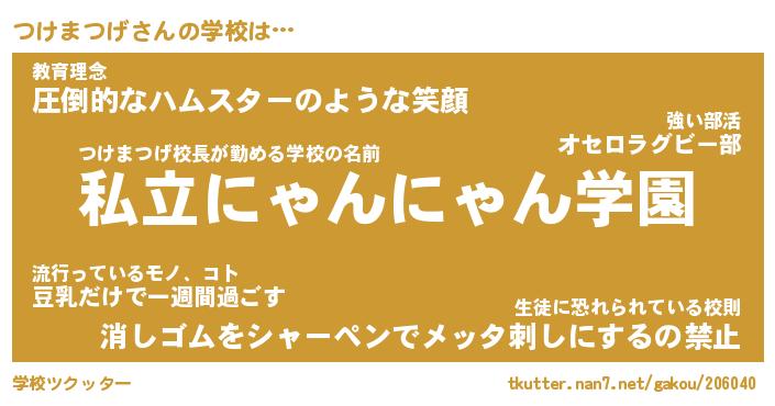 | ポケモン風あだ名 | 『ツケチュウ』『ツケマダネ』 |