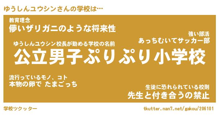 | 男性向けラノベタイトル風あだ名 | 『ゆうしんユウシンの憂鬱』 |