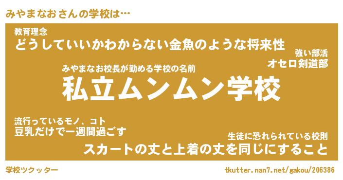 ヘコむあだ名 | 『みやにゅー』『なまこ酢』 |