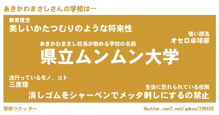 | 男性向けラノベタイトル風あだ名 | 『あきかわまさしの憂鬱』 |