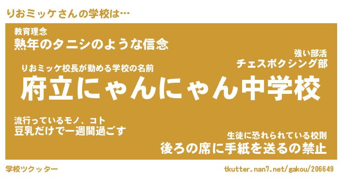 | 男性向けラノベタイトル風あだ名 | 『りおミッケの憂鬱』 |